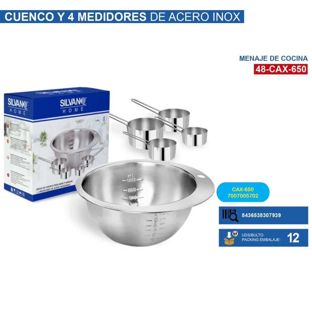CUENCO T 4 MEDIDORES DE ACERO INOX