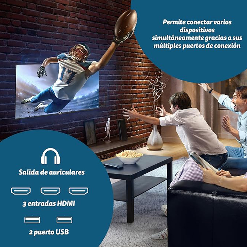 Componentes incluidos: 3 cables HDMI, 2 cables USB, 1 entrada AV y control remoto